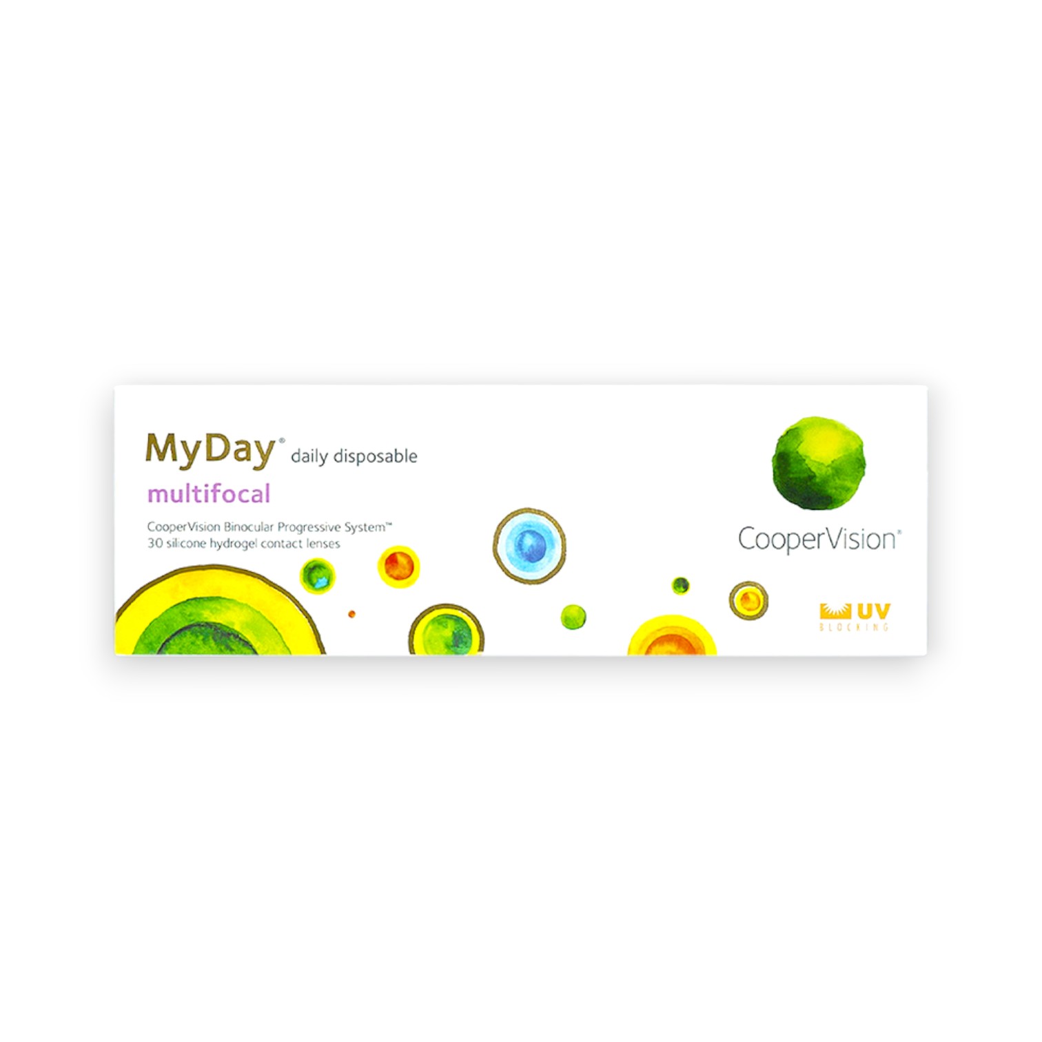 MyDay Daily Disposable Multifocal Contact Lenses are silicone hydrogel daily lenses designed to provide clear, natural vision at near, intermediate, and distance ranges for people with presbyopia. Using CooperVision’s Binocular Progressive System® with three add designs, these lenses deliver smooth visual transitions while maintaining excellent comfort and ocular health.